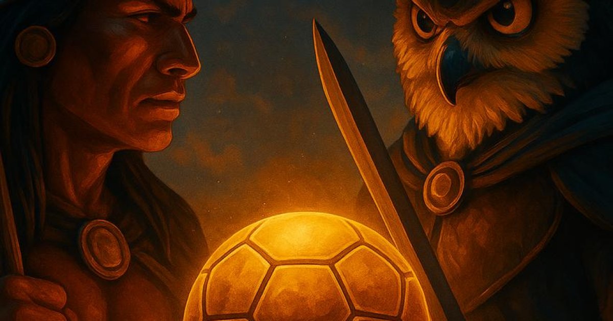 En el centro, el balón dorado: como un trofeo eterno, espera ser conquistado por aquel que tenga el valor de alcanzar la gloria.